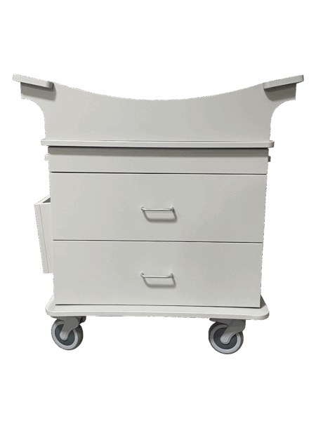 This HDPE unit is a bacterial resistant, aesthetically pleasing Bassinet made to meet all of your practical needs with its two large drawers and 5” casters, and side chart holder.